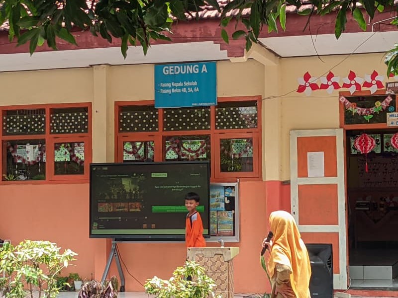 Banyuglugur - Suasana pagi di SD Negeri 1 Banyuglugur kali ini terasa istimewa. Seluruh siswa dan guru berkumpul di halaman sekolah untuk bersama-sama menonton video interaktif tentang Hari Pahlawan melalui smart panel besar yang disiapkan khusus untuk kegiatan ini. Udara pagi yang sejuk dan semangat anak-anak membuat suasana menjadi semakin meriah.